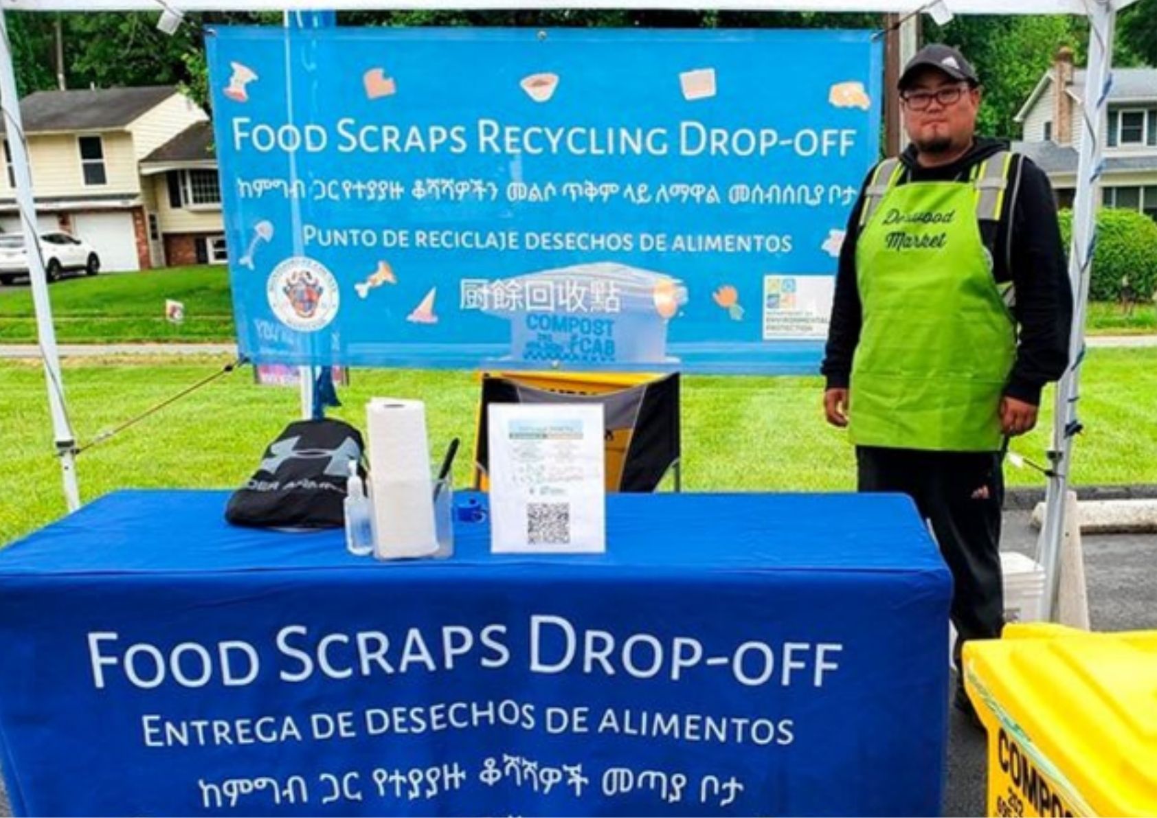 Marketgoers can bring their food scraps to be collected and turned into compost, a vital process that helps sequester carbon and enrich our soil.